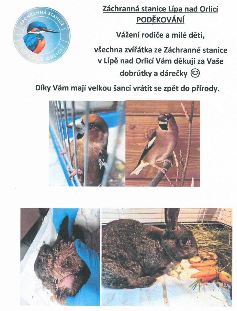 PODĚKOVÁNÍ ZE ZÁCHRANNÉ STANICE LÍPA NAD ORLICÍ